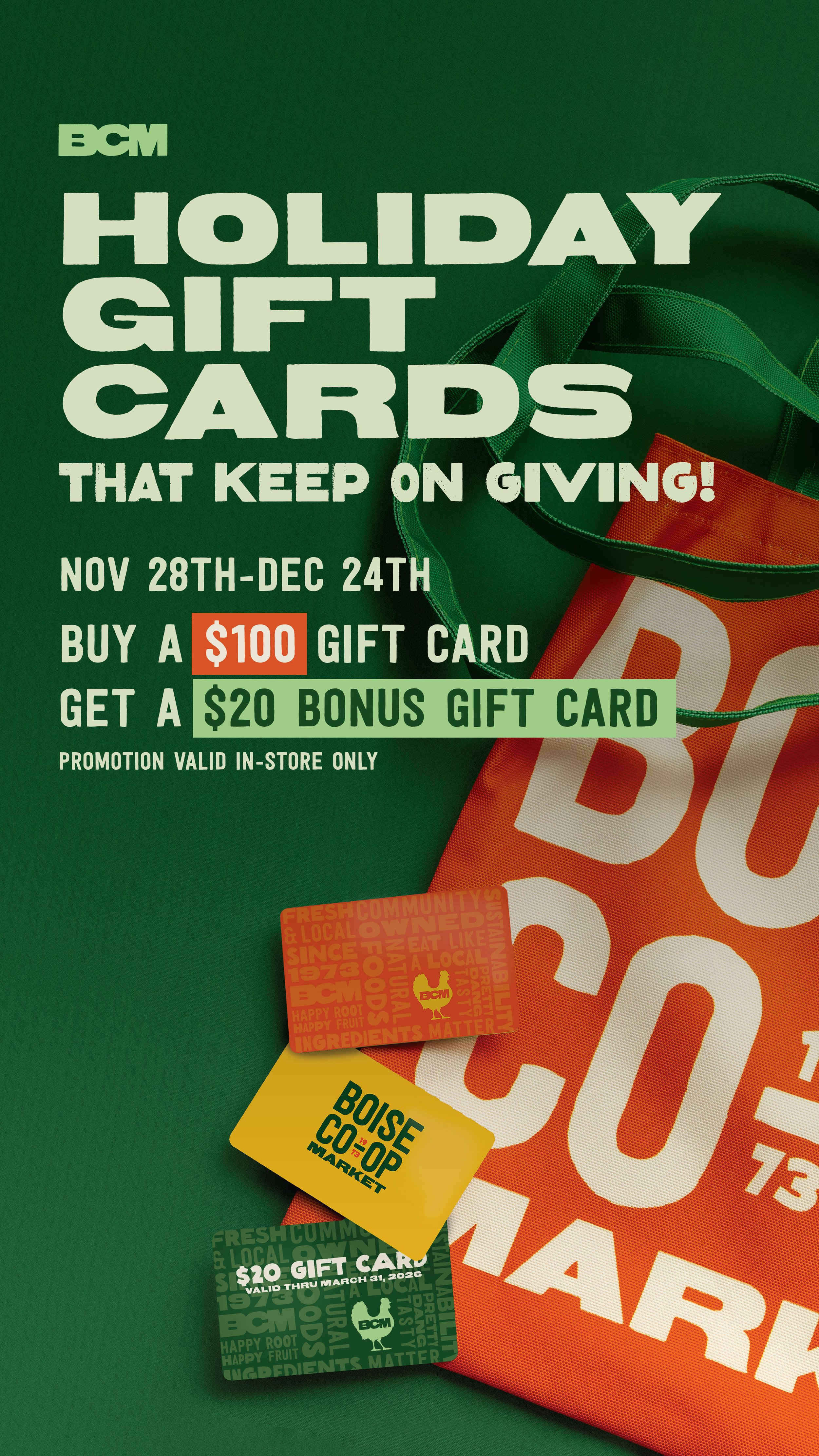 $20 Bonus card valid January 1 - March 31, 2026.