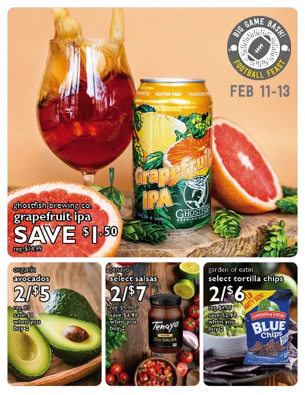 BIG GAME BASH! • FEB 11-13 Friday, February 11, 2022 6:00 AM Sunday, February 13, 2022 10:00 PM Google Calendar ICS The Big Game is on Sunday, Feb. 13 and you’re going to want to stock up and save for your football feast! We’ve got chips, dips, burgers, beer, and more on sale! View the flyer at the link below. view flyer