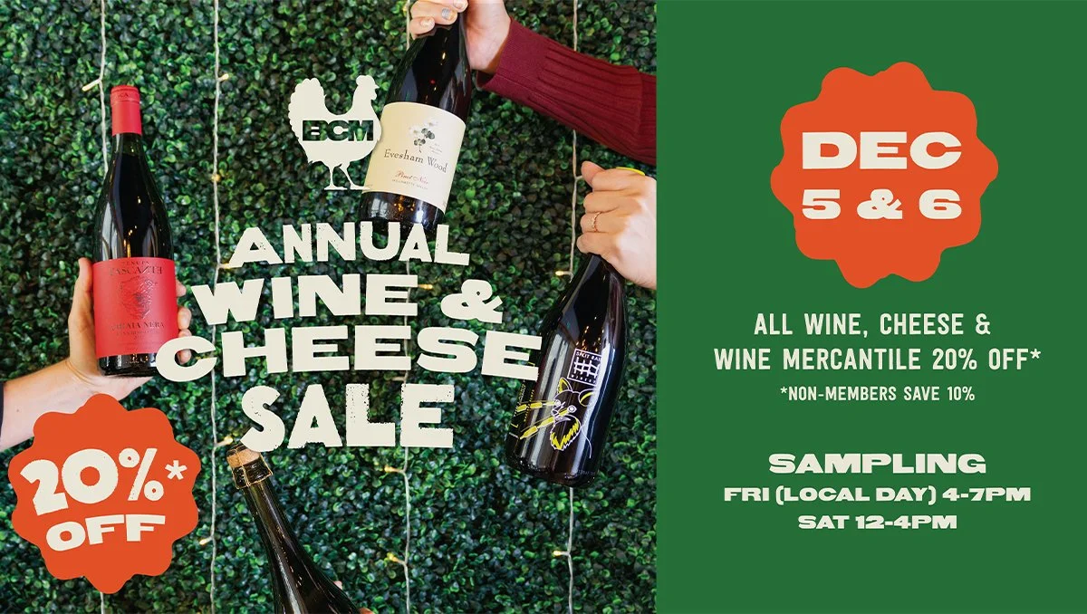 Get ready, wine lovers, our Annual Wine & Cheese Sale is back and sweeter than ever! December 5 & 6, Co-op Members save 20% on every wine and every cheese in the store. Non-members save 10%.