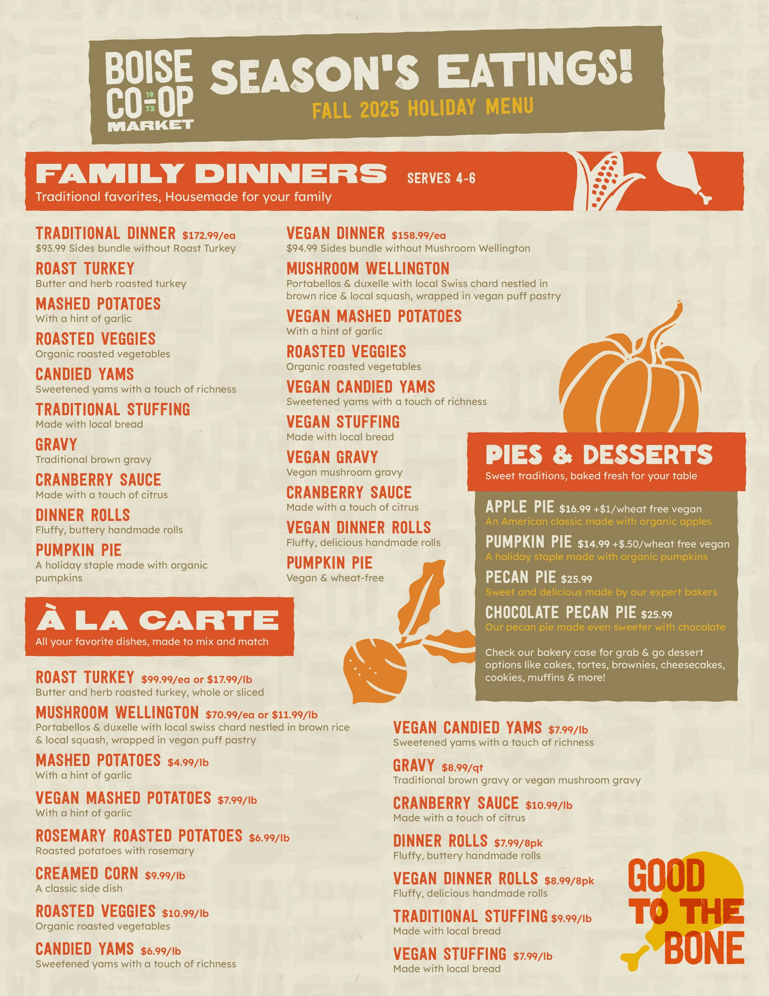 Pre-Orders are now open for Thanksgiving! Grab nā Go is available while supplies last. Thank you!
